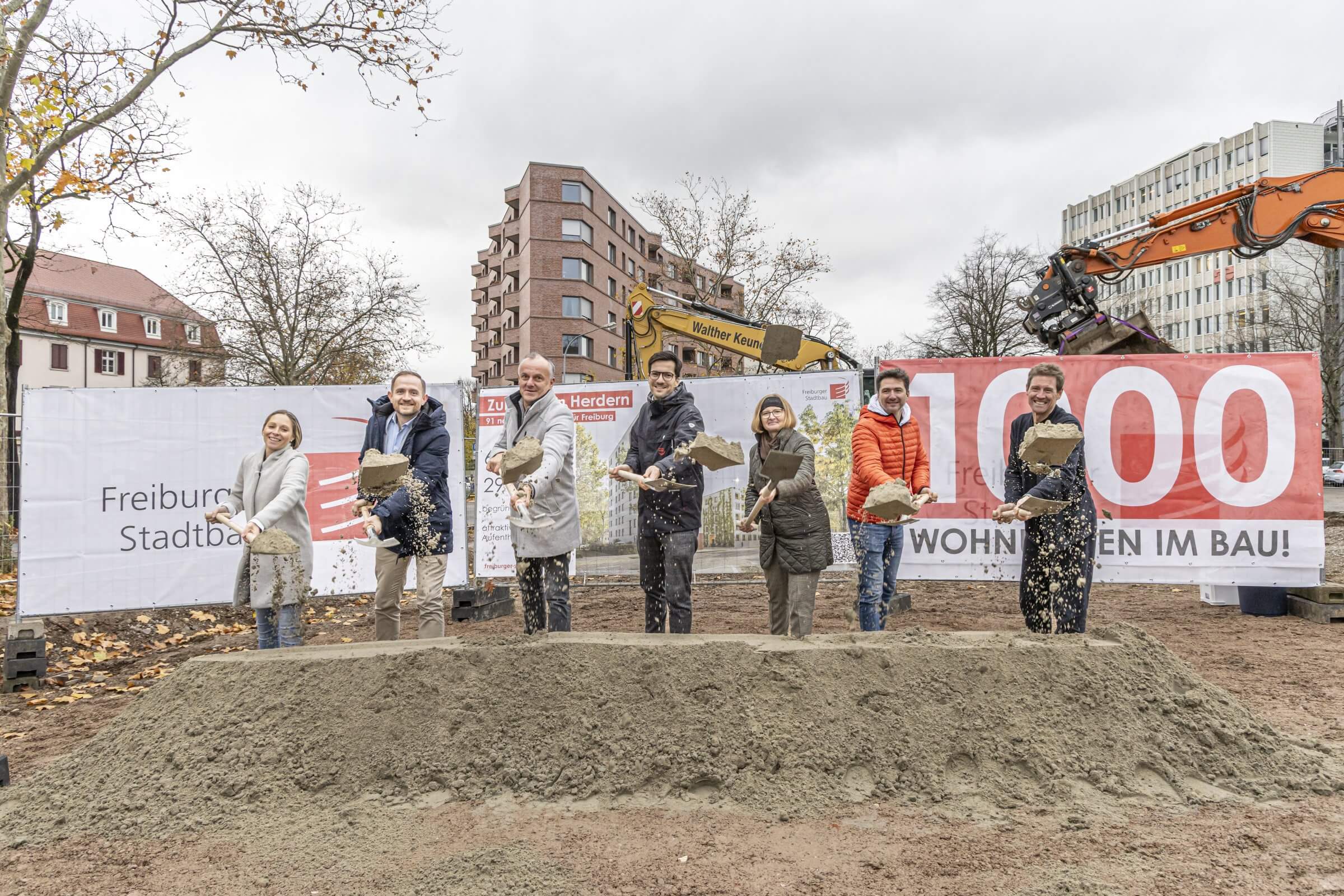 Wir freuen uns sehr über den offiziellen Startschuss: Im Stadtteil Freiburg-Herdern entstehen zwei neue Wohngebäude mit insgesamt 91 Wohnungen. Nun können die Bagger losrollen!